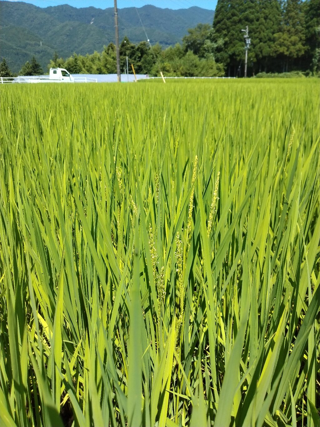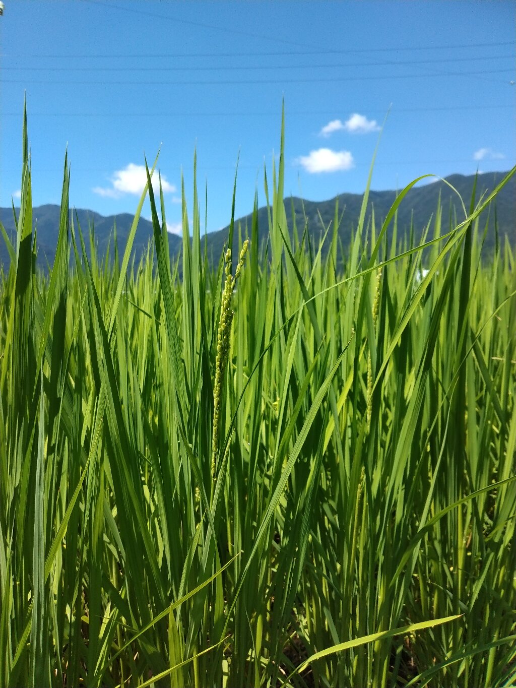 猛暑続く中、田んぼでは稲穂が出始めましたね。